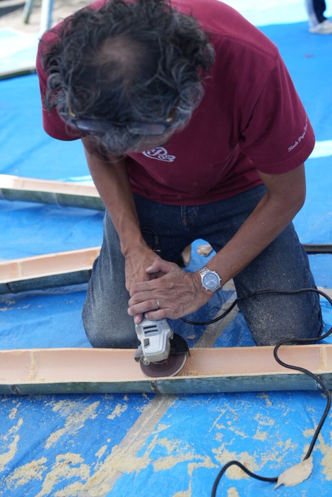 さらに内側をグラインダーでツルツルに仕上げて、そうめんが気持ちよく流れるようにしていきますよ〜!