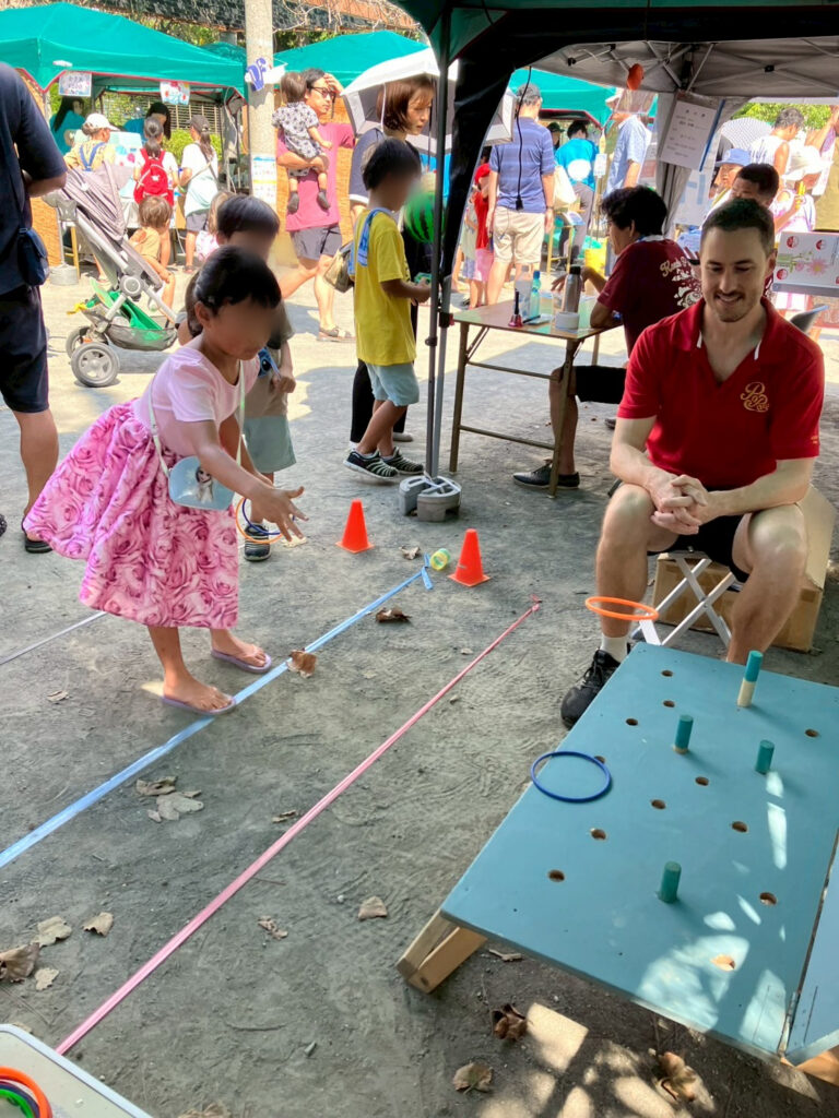 お祭りが始まると、さっそくわなげブースは大にぎわい!