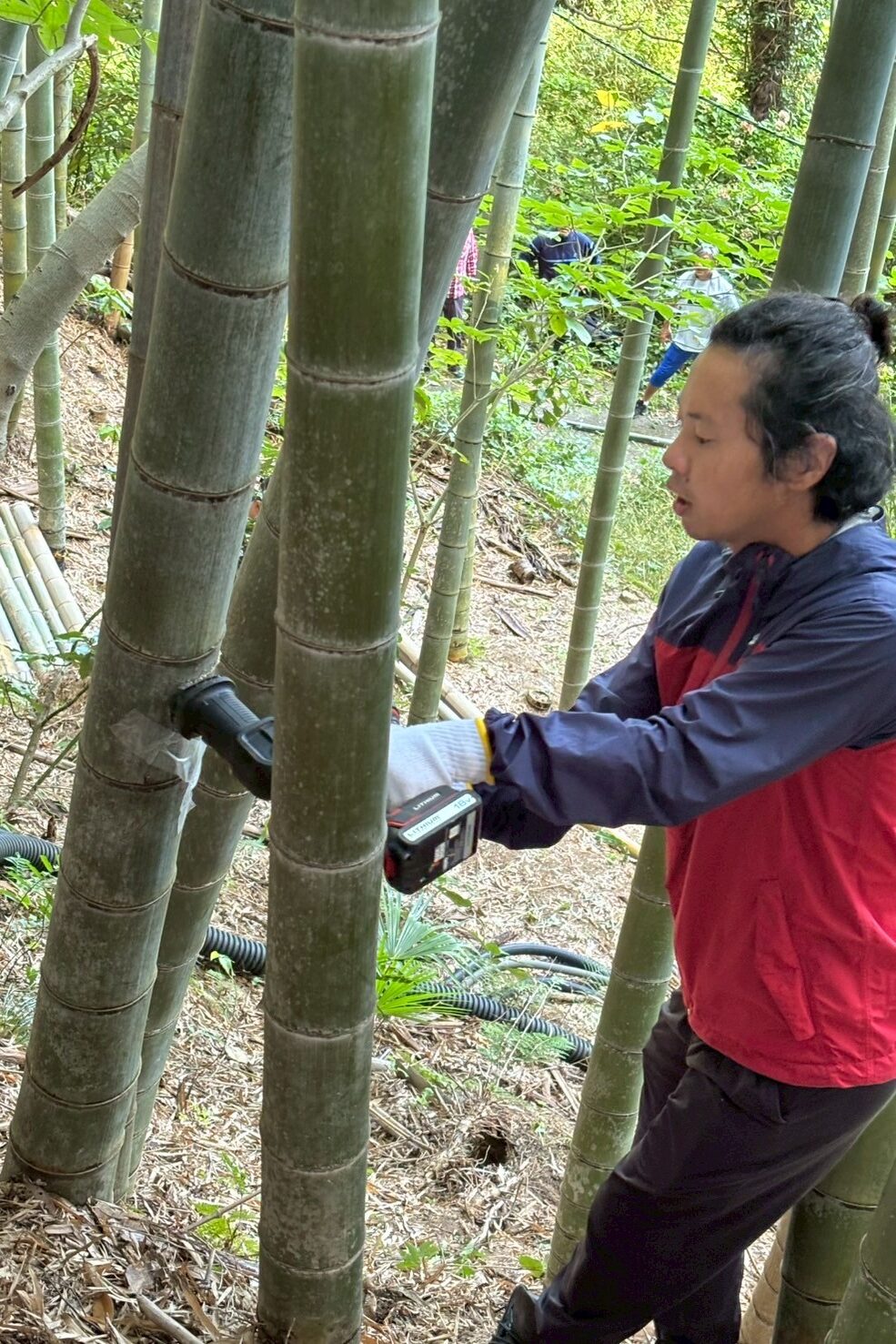 Papasの朝は、竹の採取からスタートです。