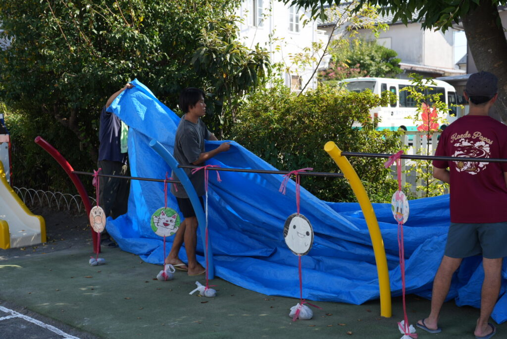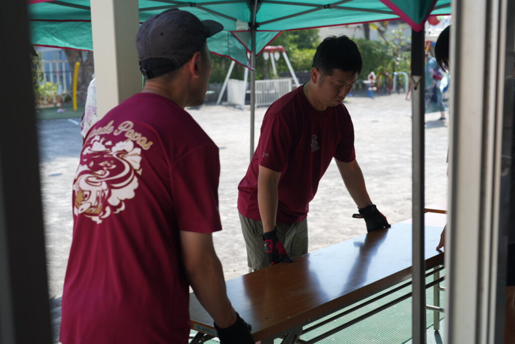 今回のイベントは園主催で、Papasは会場設営と出店(飲み物販売・的当て)のサポートを行いました^^