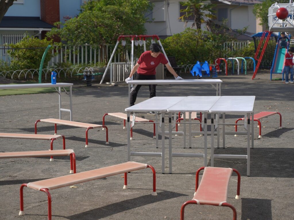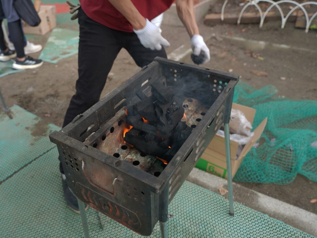 火起こし作業を進める一方で、会場の設営も進めていきます!