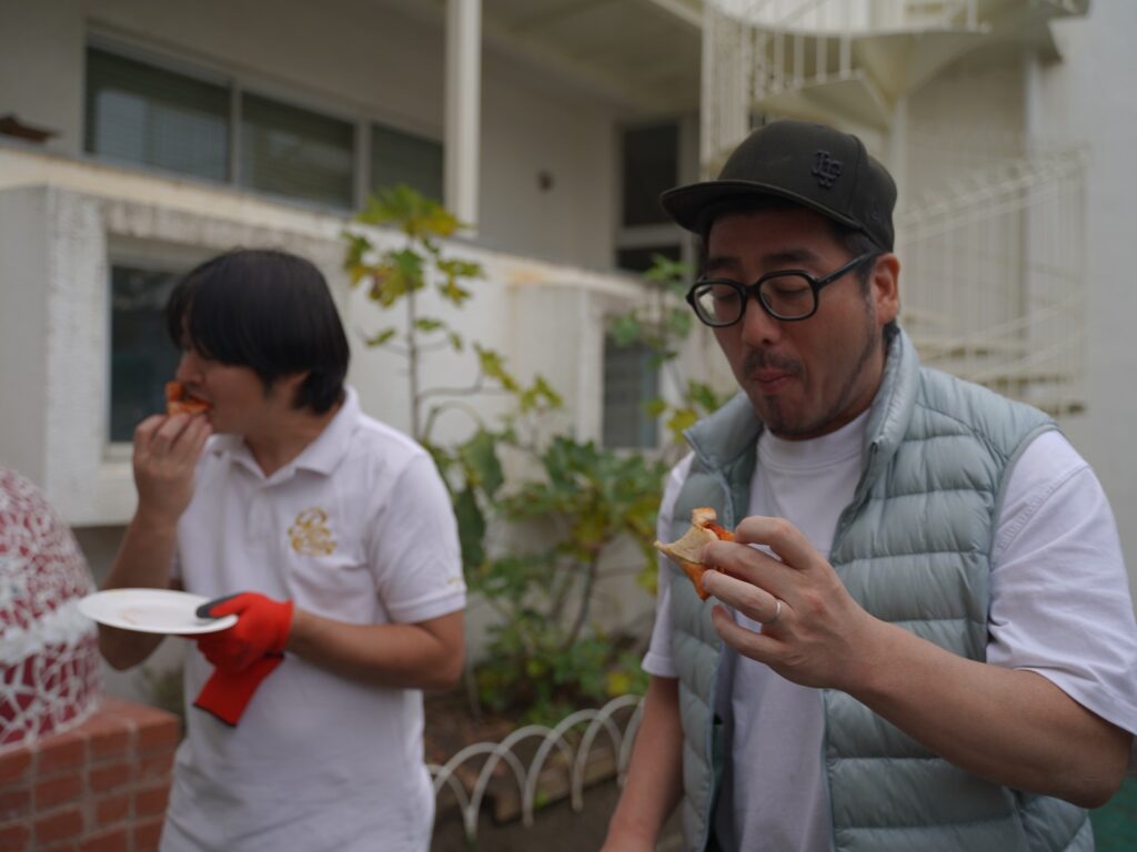 焼きたてをみんなでハフハフ言いながら食べるこの時間はピザ窯の最大の醍醐味です。